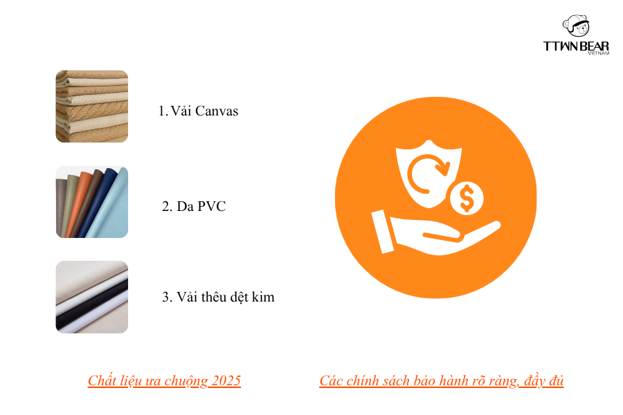 - Da PVC cao cấp: thay thế da thật, mang đến vẻ sang trọng nhưng thân thiện môi trường.