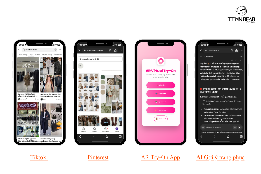 - AI Gợi ý trang phục: Một số ứng dụng thông minh có thể đề xuất cách phối túi TTWN BEAR với outfit bạn đang có.