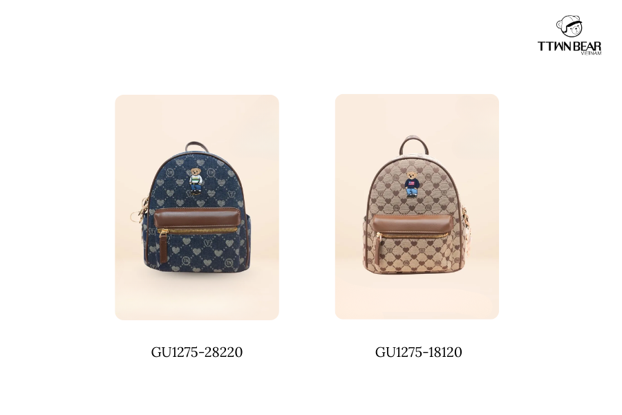 GU1145 sở hữu thiết kế nhỏ gọn, thời trang với họa tiết monogram gấu đặc trưng, mang lại vẻ ngoài năng động và hiện đại. Từng chi tiết được hoàn thiện chỉn chu, kết hợp nhiều ngăn tiện dụng giúp bạn dễ dàng sắp xếp đồ dùng cá nhân. Với hai gam màu Đen cá tính và Be thanh lịch, mẫu balo này là lựa chọn lý tưởng cho những ai yêu thích phong cách gọn nhẹ nhưng vẫn nổi bật.