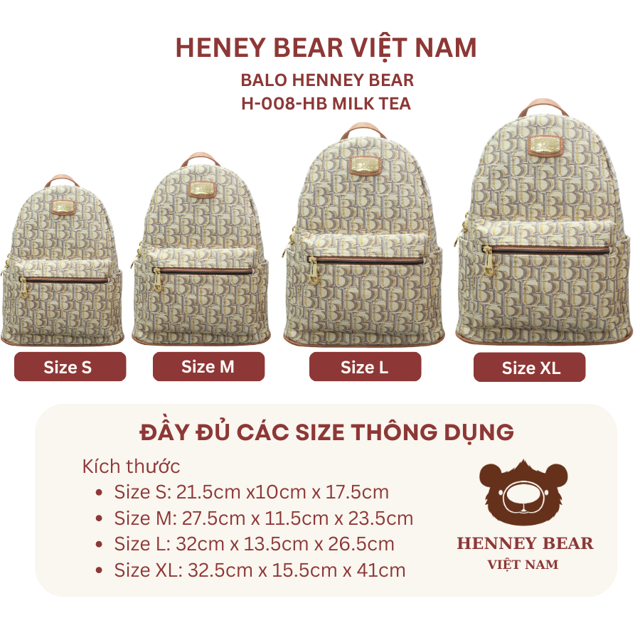 Balo chính hãng HENNEY BEAR - H-008- HB MILK TEA