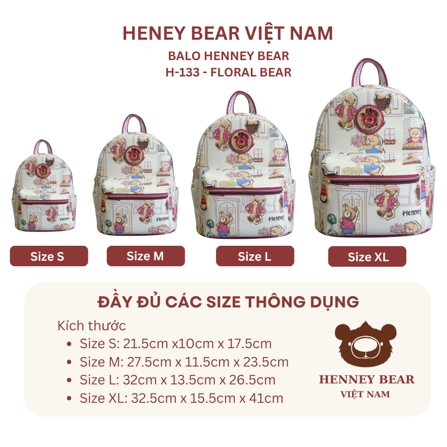 Balo chính hãng HENNEY BEAR - H-133 FLORAL BEAR Chính sách - Ưu đãi