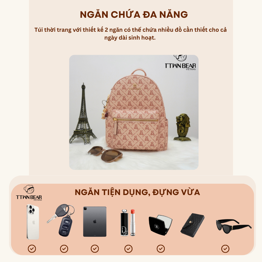 Balo gấu nữ đi học, đi chơi cao cấp  TTWN BEAR - TN3374 Chính sách - Ưu đãi