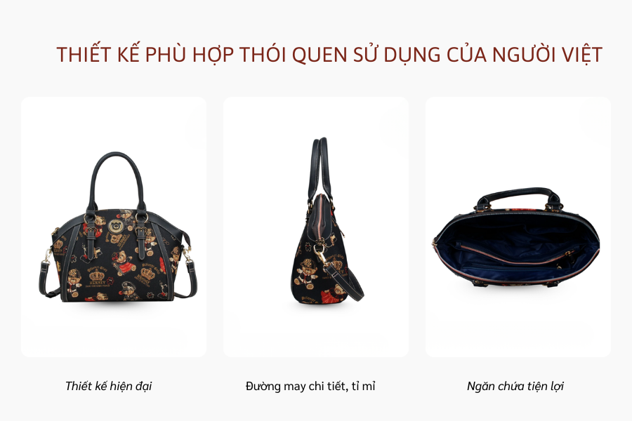 Các sản phẩm Henny Bear chính hãng thường có kích thước vừa phải, bố cục ngăn hợp lý và kiểu dáng linh hoạt, giúp người dùng dễ dàng mang theo khi đi làm, đi học hoặc dạo phố. Đây là điểm cộng lớn đối với người tiêu dùng Việt, những người ưu tiên một chiếc túi có thể sử dụng trong nhiều hoàn cảnh khác nhau mà không cần thay đổi liên tục.