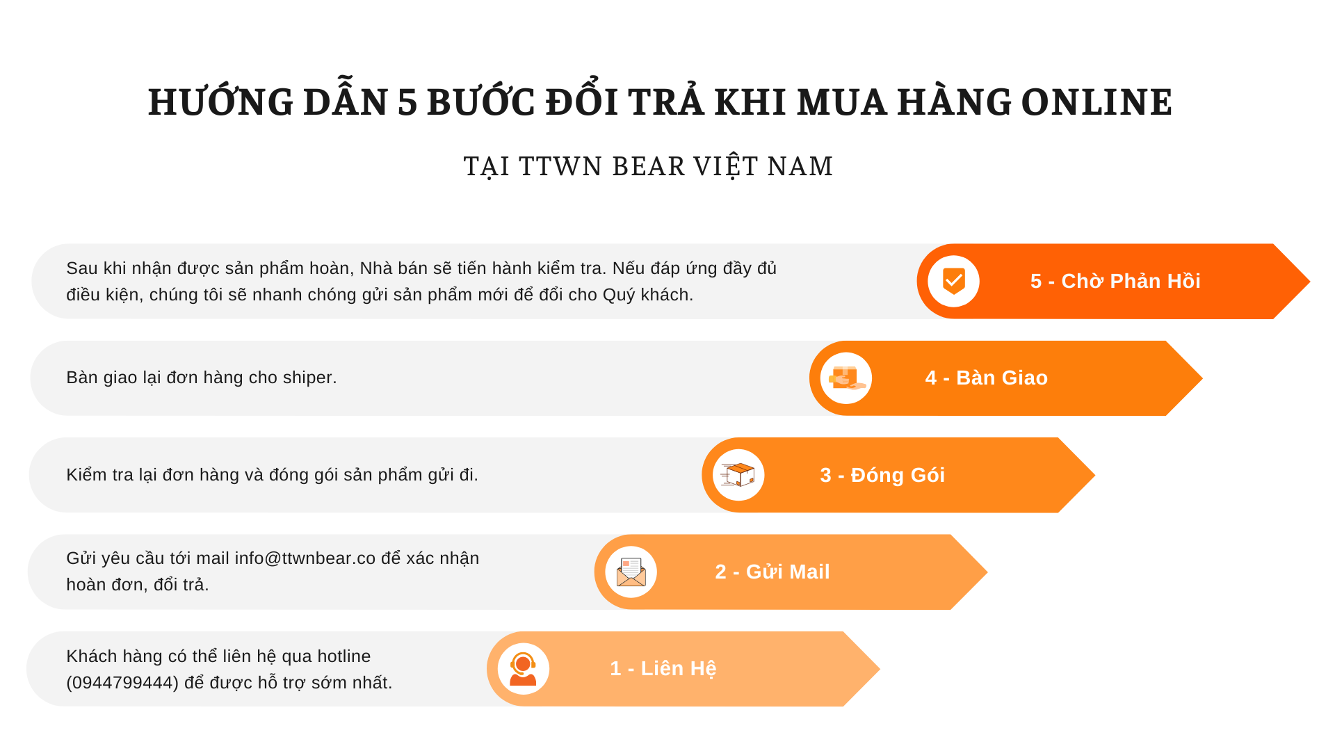 TTWN BEAR luôn nỗ lực mang đến trải nghiệm mua sắm hài lòng và đảm bảo quyền lợi chính đáng cho khách hàng.
