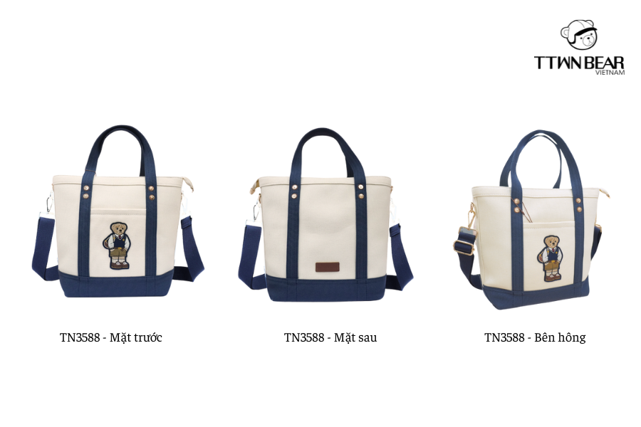 Chiếc túi canvas này vừa nhẹ vừa bền, đủ rộng để mang sách vở, và đồ dùng học tập, thiết kế màu kem phối xanh nổi bật. Hình gấu ở trước tạo cảm giác đáng yêu, khiến túi không chỉ tiện mà còn có gu. Đây chính là lựa chọn hợp lý cho những bạn muốn một chiếc túi xách vừa học tập vừa đi chơi khá oke.