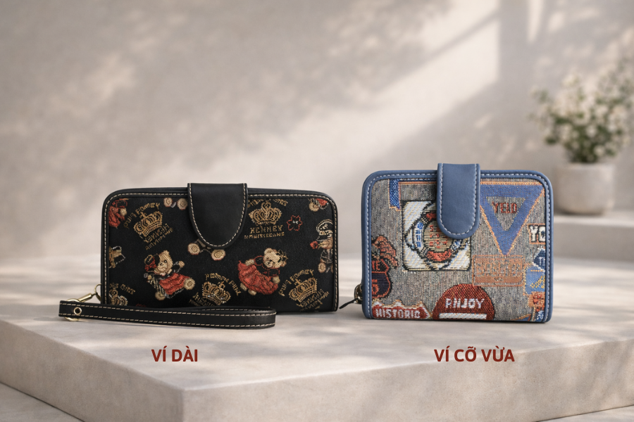 Ví cỡ vừa: với thiết kế vừa tiện lợi, phù hợp sử dụng hằng ngày hoặc đi chơi.
