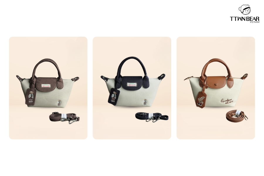 Nếu bạn yêu thích phong cách năng động, cá tính thì dòng túi đeo chéo GUOO BEAR là lựa chọn không thể bỏ qua. Thiết kế nhỏ gọn, tiện di chuyển, phù hợp dạo phố, du lịch hay tiệc cuối năm. Với bảng màu đa dạng như đen, trắng, nâu, pastel, đây cũng là dòng túi xách bán chạy nhất trong các dịp lễ Tết.