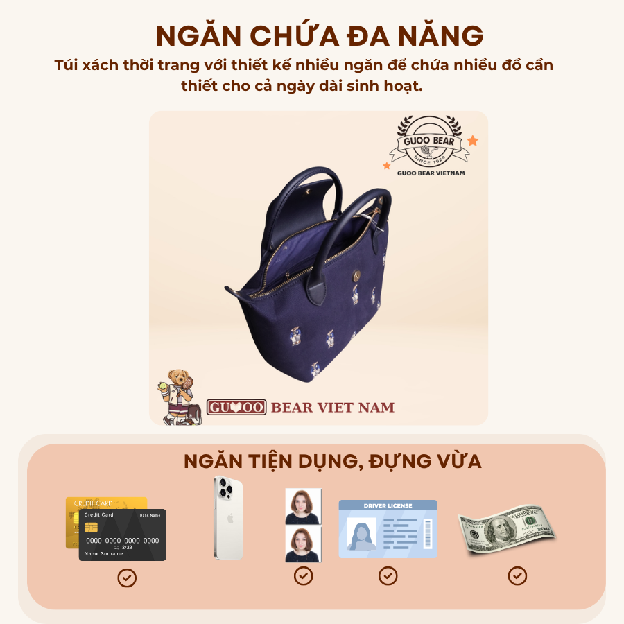 Túi xách thời trang chính hãng GUOO BEAR - GU1330 (M) Chính sách - Ưu đãi