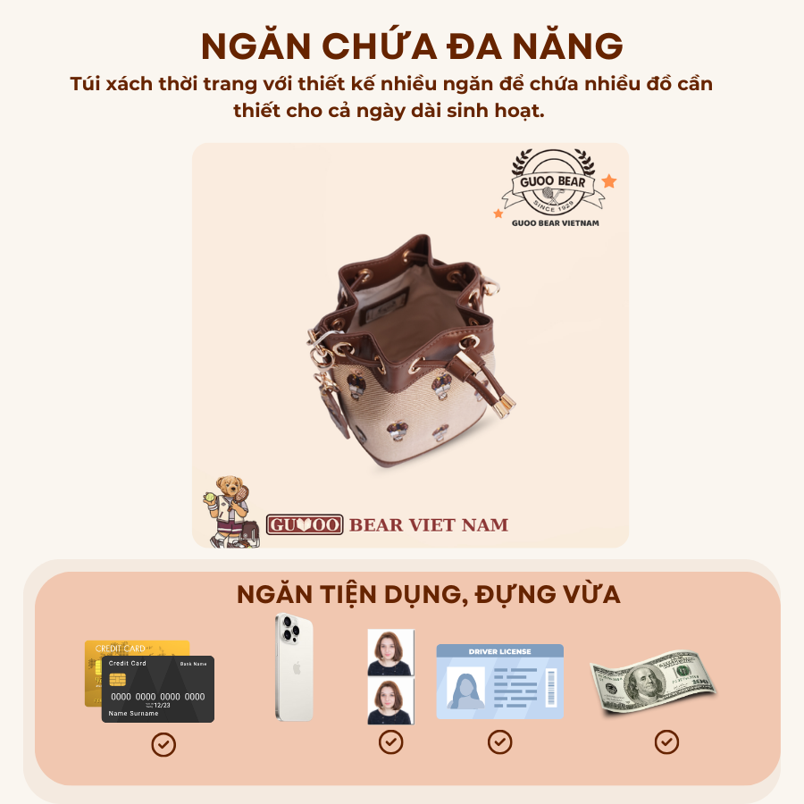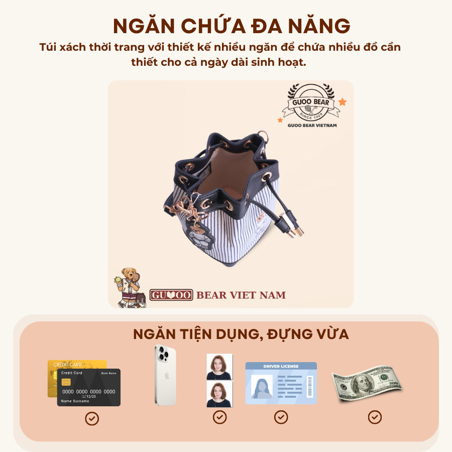 Túi xách thời trang chính hãng GUOO BEAR - GU1570 Chính sách - Ưu đãi