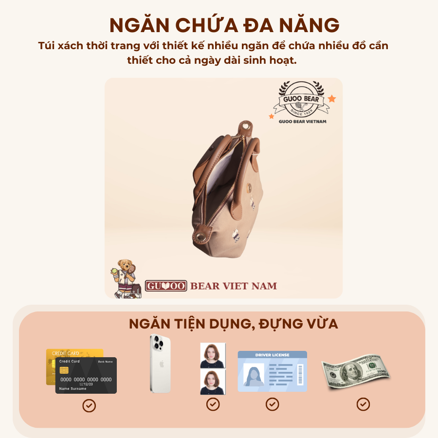 Túi xách thời trang chính hãng GUOO BEAR - GU1642 Chính sách - Ưu đãi
