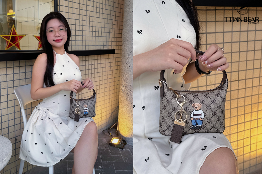 item túi mini bag với thiết kế nhỏ gọn và họa tiết nổi bật đã trở thành điểm nhấn hoàn hảo cho outfit váy trắng xinh xắn. Sự kết hợp này mang đến vibe vừa ngọt ngào vừa sang, khiến tổng thể outfit thêm phần thu hút mà không cần quá nhiều phụ kiện đi kèm. Chính sự tinh tế của túi mini đã giúp outfit vốn đơn giản trở nên thời thượng, phù hợp cho những buổi cafe hay dạo phố.
