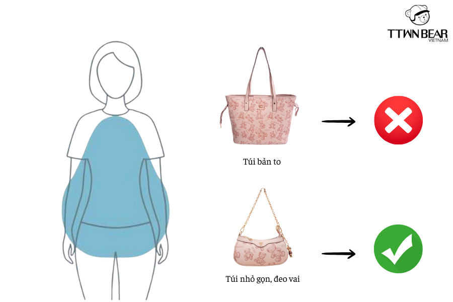 Không nên chọn những mẫu túi xách bản to ---> Nên chọn những mẫu túi nhỏ gọn, đeo vai.