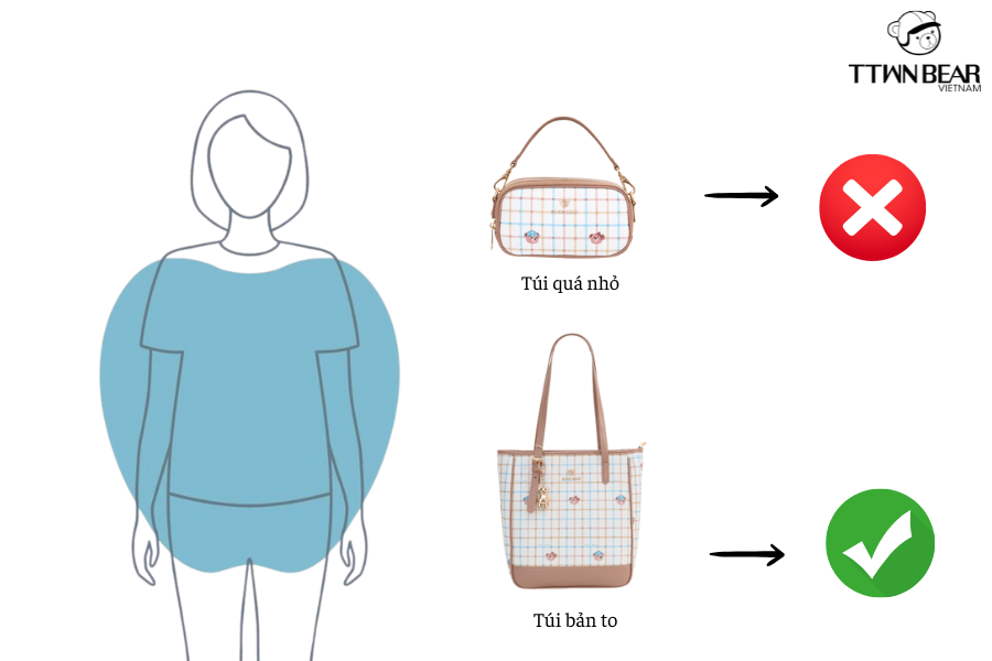 Không nên chọn túi xách quá nhỏ, chất liệu mềm ---> Nên chọn túi có kích thước bản to.