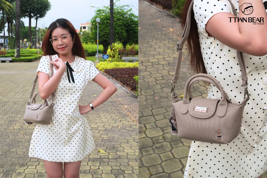 Crossbody bag với thiết kế phong cách nhẹ nhàng đã giúp outfit váy chấm bi thêm phần tinh tế và hiện đại. Sự kết hợp này không chỉ tạo cảm giác năng động, thoải mái mà còn làm tổng thể trở nên cân bằng, tôn lên nét trẻ trung, nữ tính của người diện. Đây chính là minh chứng cho việc một chiếc túi đeo chéo đơn giản cũng đủ khiến outfit bừng sáng giữa phố.