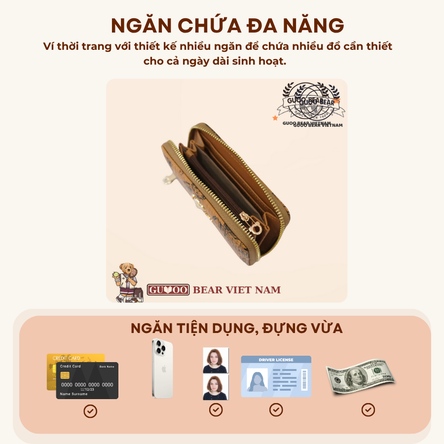 Ví cầm tay sang trọng, chính hãng GUOO BEAR - GO-2016 Nâu Nhỡ Chính sách - Ưu đãi